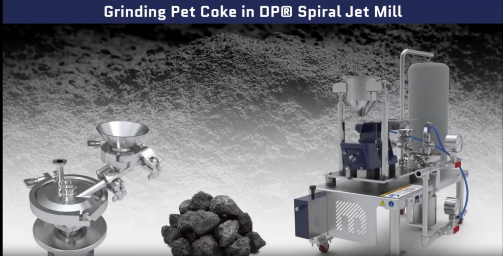 The video showcases PET coke being processed using a DP® Spiral Jet Mill, demonstrating how fluid energy grinding delivers superior results.