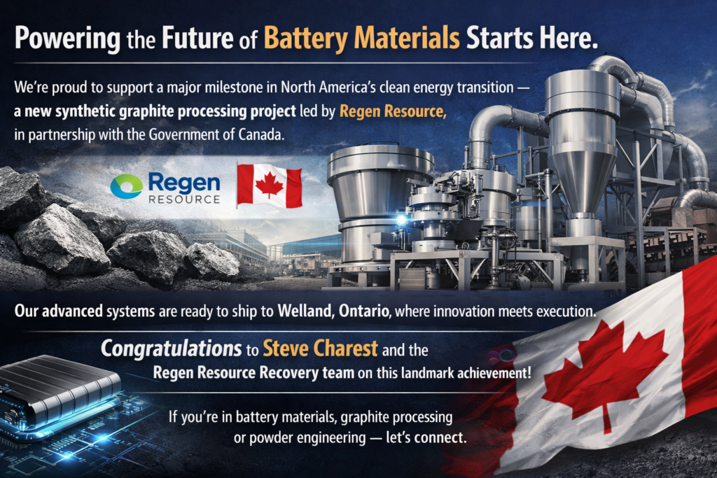 #BatteryMaterials #Graphite #CleanEnergy #EnergyTransition #Manufacturing #SupplyChain #Innovation #Canada #DPpulveriser #ProcessEngineering #PowderProcessing